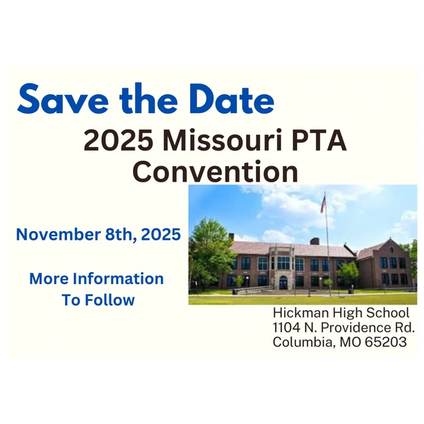 Save the date for the 2025 Missouri PTA Convention on November 8th. Such a great opportunity to attend relevant workshops and network with other PTA executives from all over Missouri! Registration info coming soon.