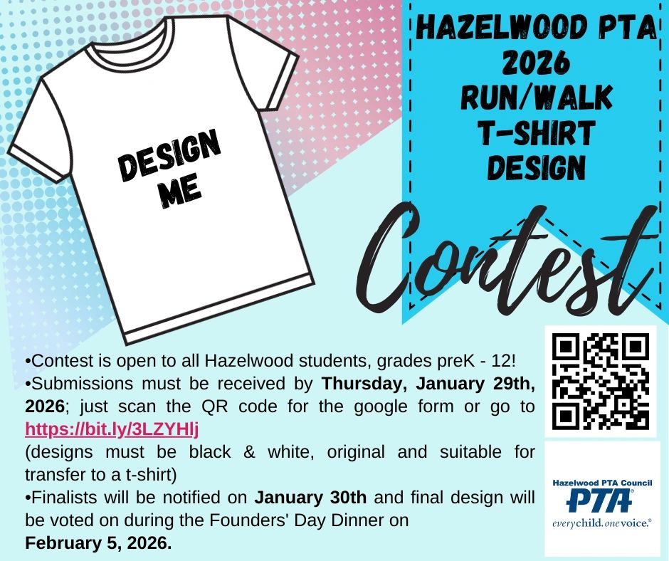 Help us design our official Run/Walk t-shirt! Our contest is open to all Hazelwood students, click the link below for more i
